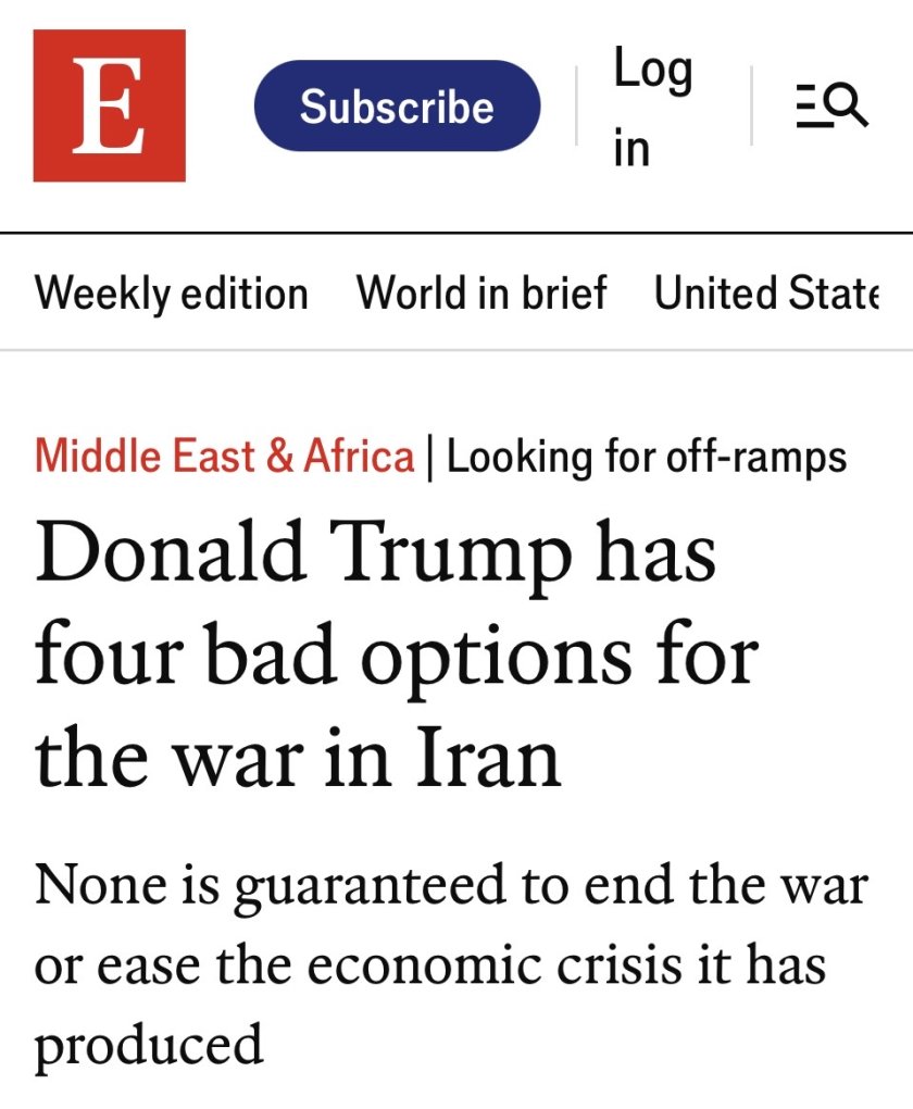 С навлизането в четвъртата седмица на войната в Близкия изток е ясно, че САЩ нямат ясен план за воденето ѝ, пише Economist, така че сега имат четири стратегически варианта, от които да избират.