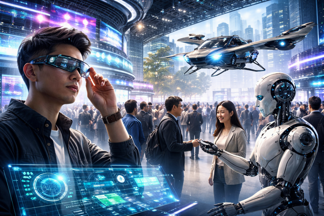Сред акцентите са интелигентни очила и сервизни роботи. Представени са и летящи автомобили, които привличат внимание още преди старта. Изложители и журналисти вече разглеждат демонстрации и продуктови решения на място.