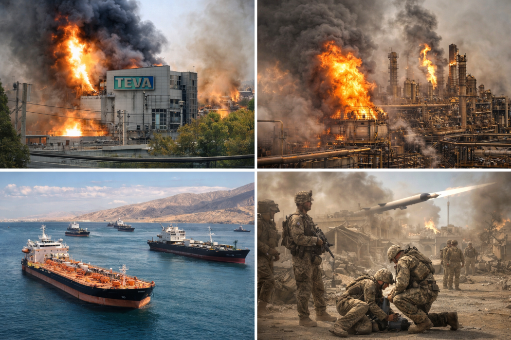 – Иран бомбардира израелската фармацевтична фабрика TEVA — най-големият производител на генерични лекарства на Земята. Течове на химикали. Вторични експлозии. Пожар във фабриката.