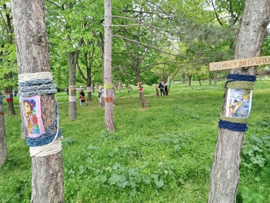 Към плетивата са добавени и картини от миналогодишното издание на конкурса „Приказният свят на природата“. Така инсталацията комбинира текстил, цвят и изображение. Ефектът е като открита галерия в парка. Посланието остава екологично и ясно. Природата има нужда от видима грижа и обща отговорност.