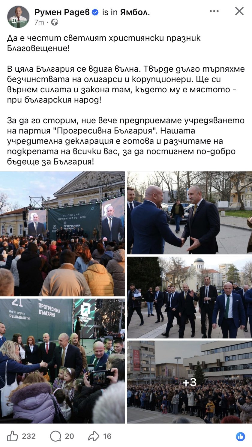 Румен Радев от Ямбол: Да е честит светлият християнски празник Благовещение!