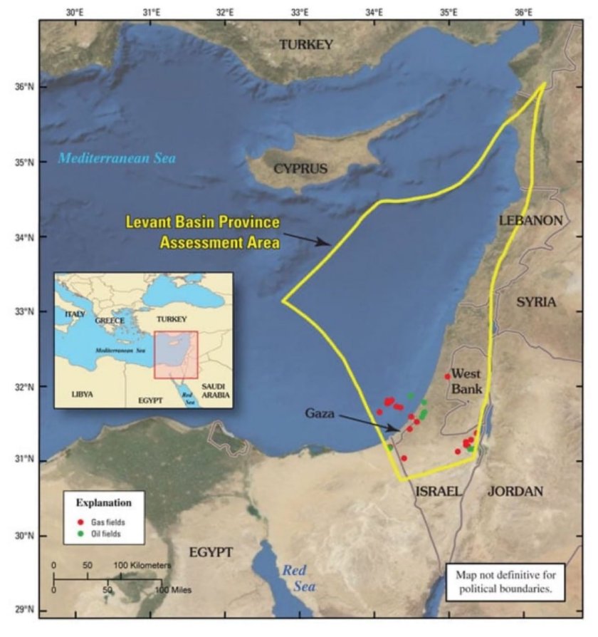 Басейнът Левант съдържа 122 трилиона кубически фута газ и 1,7 милиарда барела петрол.